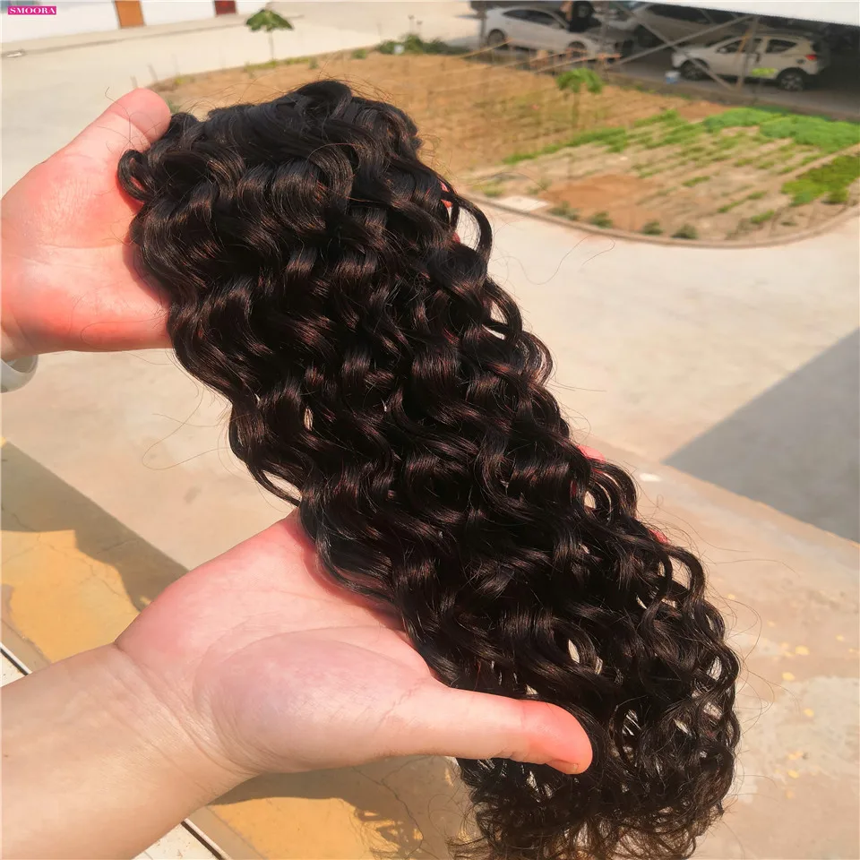 Special Price of Smoora Malaysian Water Wave Bundles With Frontal Closure Human Hair Bundles With Frontal Closure Non Remy Hair Weave Extensions