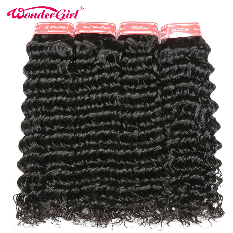 Buy Wonder girl Deep Wave 4 Bundles Deal Peruvian Hair Bundles Remy Hair Extensions Human Hair Bundles No Tangle No Shedding