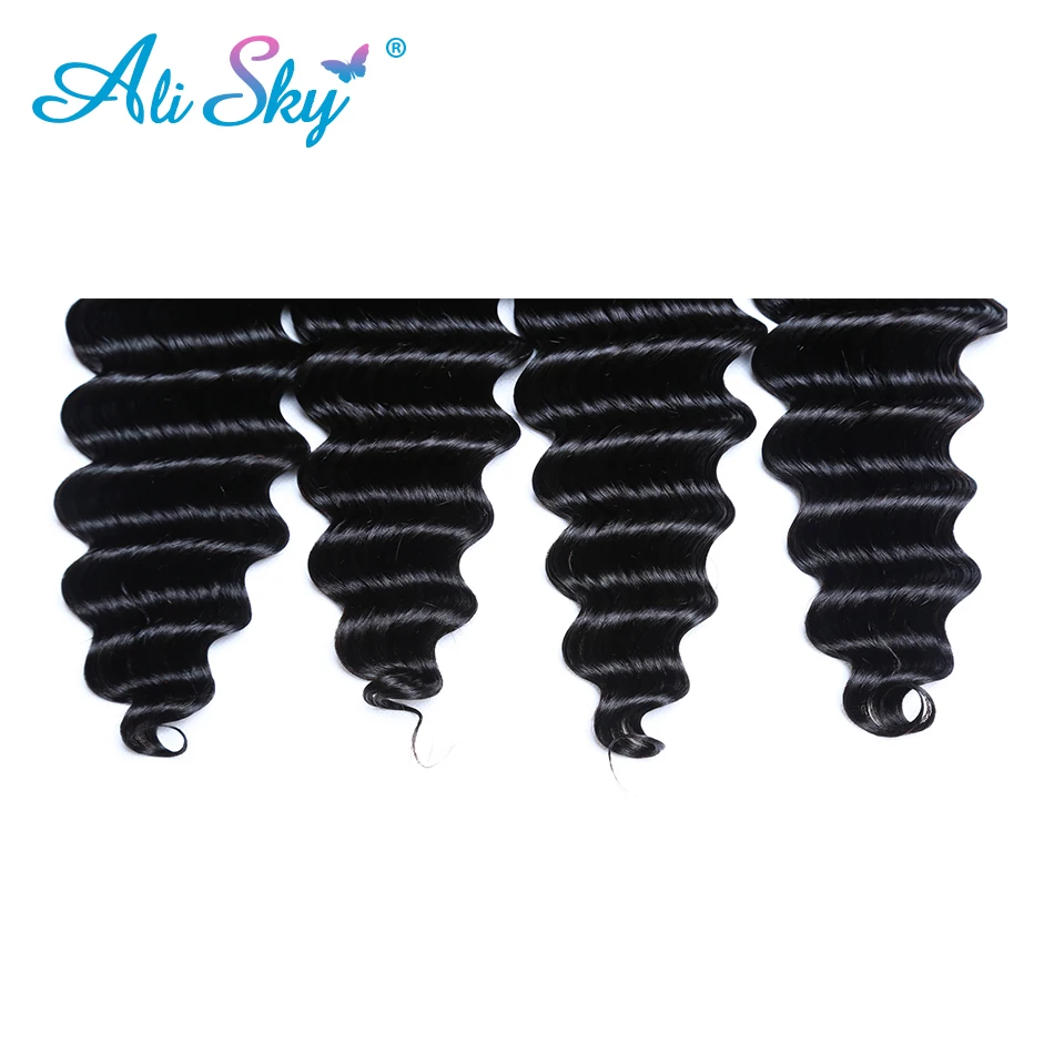 Cheap Price of Peruvian Deep Wave Remy hair 1piece black human hair weaving extension thick full weft bundles No Shedding no TangleAli Sky