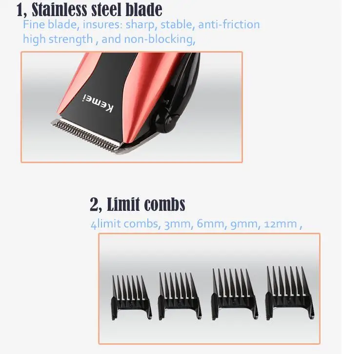 Addition Information of kemei 10W powerful clipper hair cutting machine hairdresser professional hair trimmer haircut barber men electric shaver